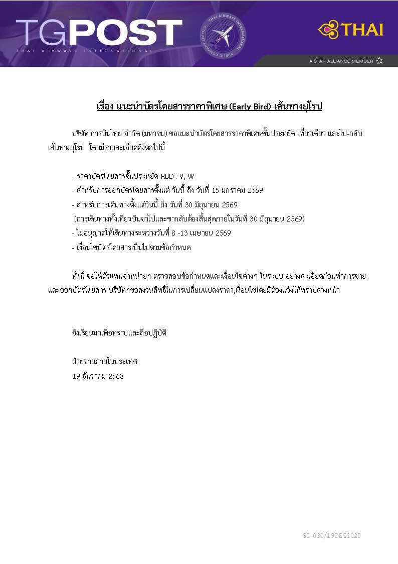 TG Early Bird to Europe
